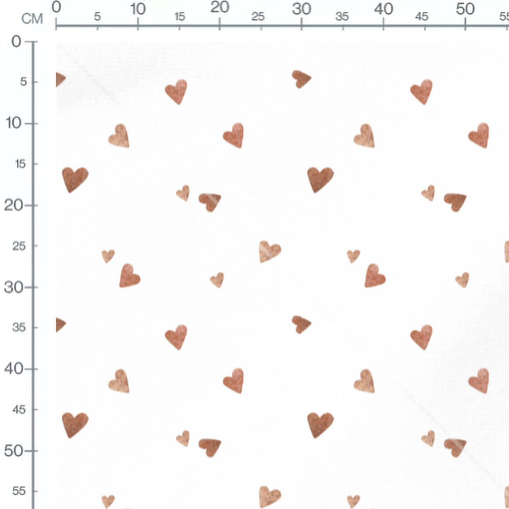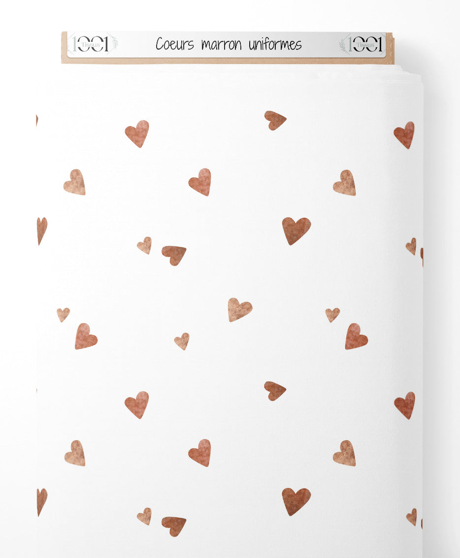 Les cœurs sont répartis de manière aléatoire sur le fond. Chaque cœur présente une teinte marron uniforme.Les tissus