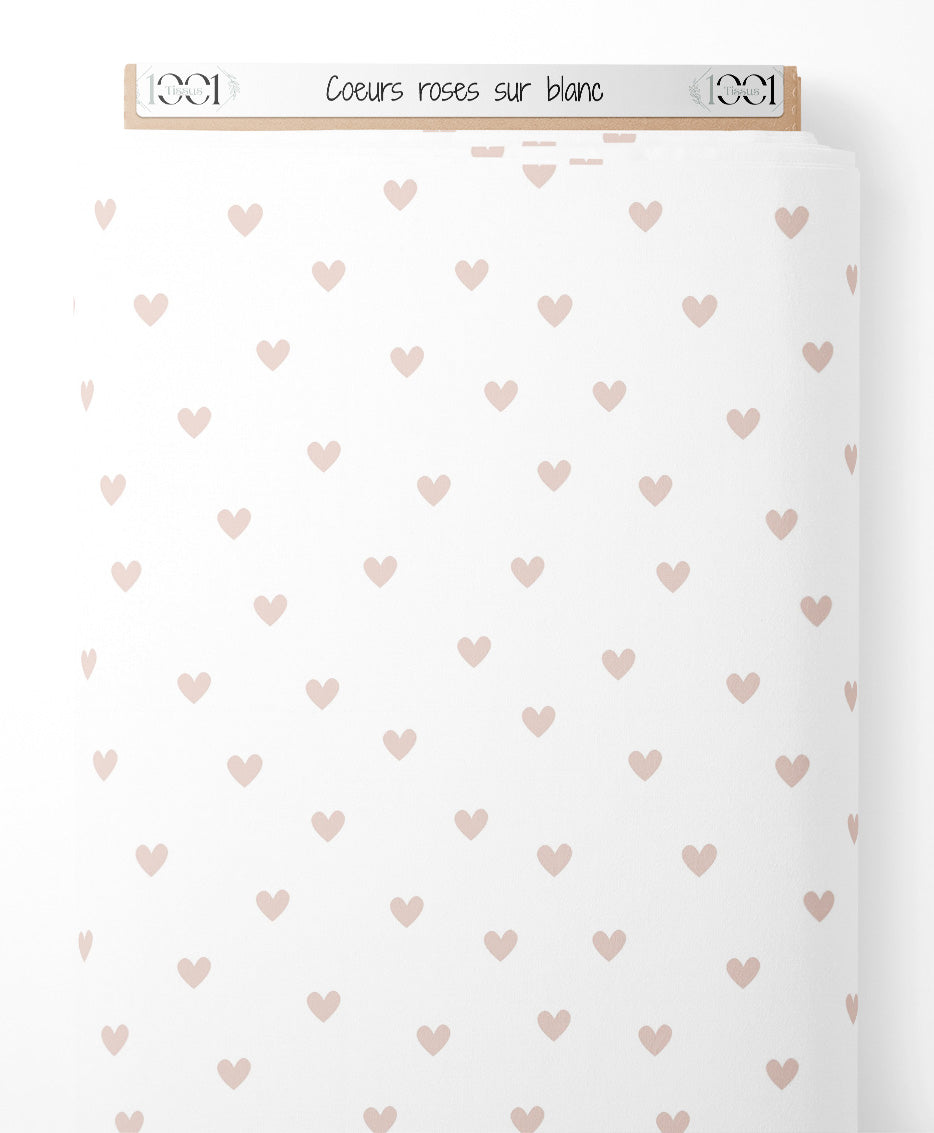Tissu - Cœurs roses sur blanc