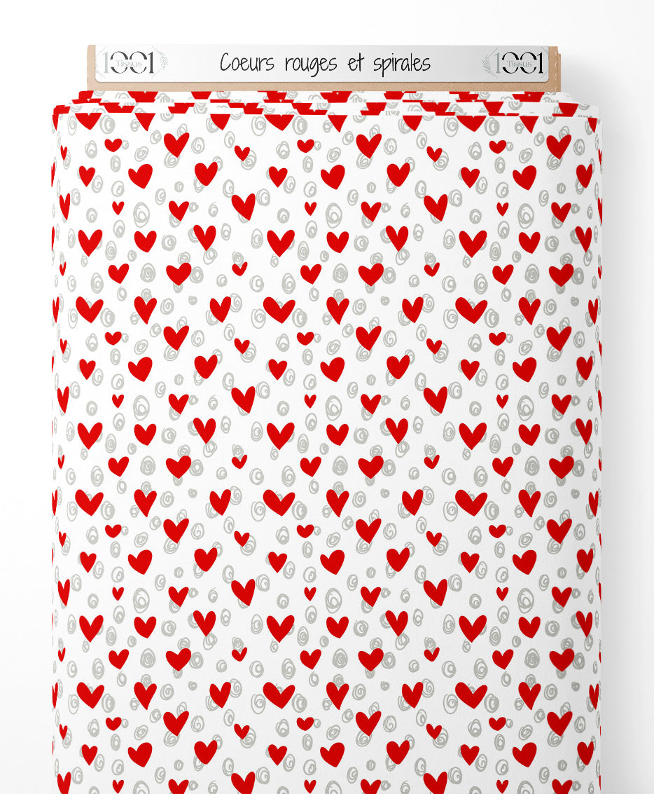 Tissu - Cœurs rouges et spirales