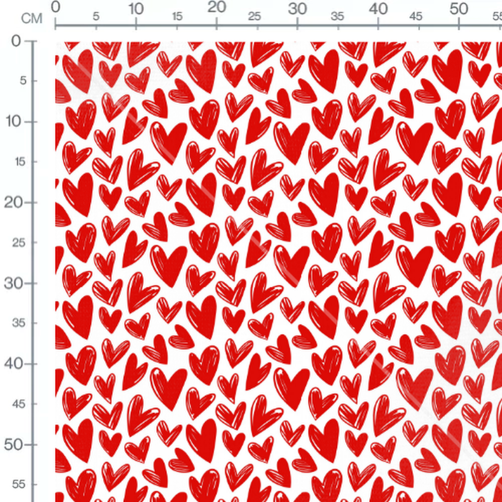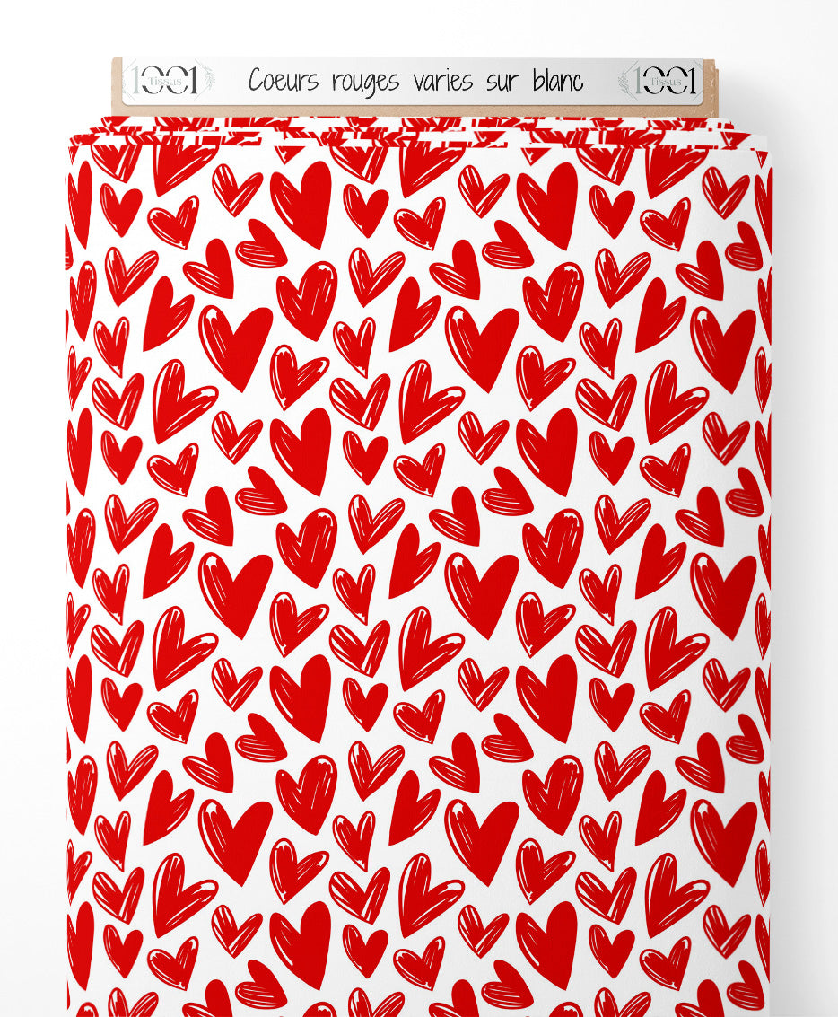 Tissu - Cœurs rouges variés sur blanc