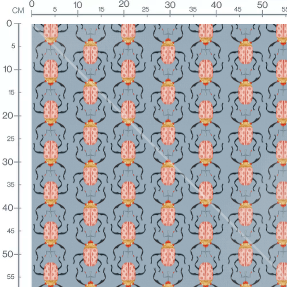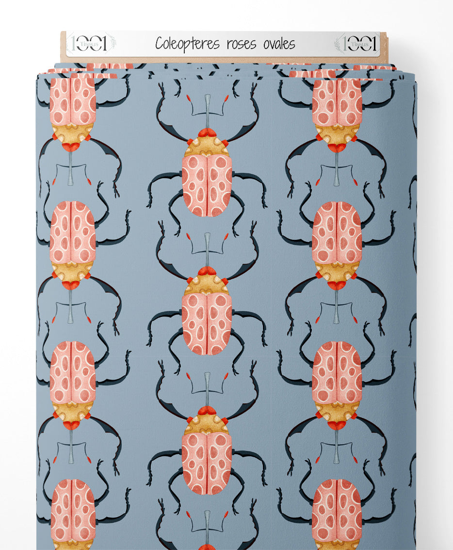 Les coléoptères présentent des motifs ovales blancs sur leur carapace rose. Leurs pattes et antennes sont noires avec des touches de rouge vif.Les tissus