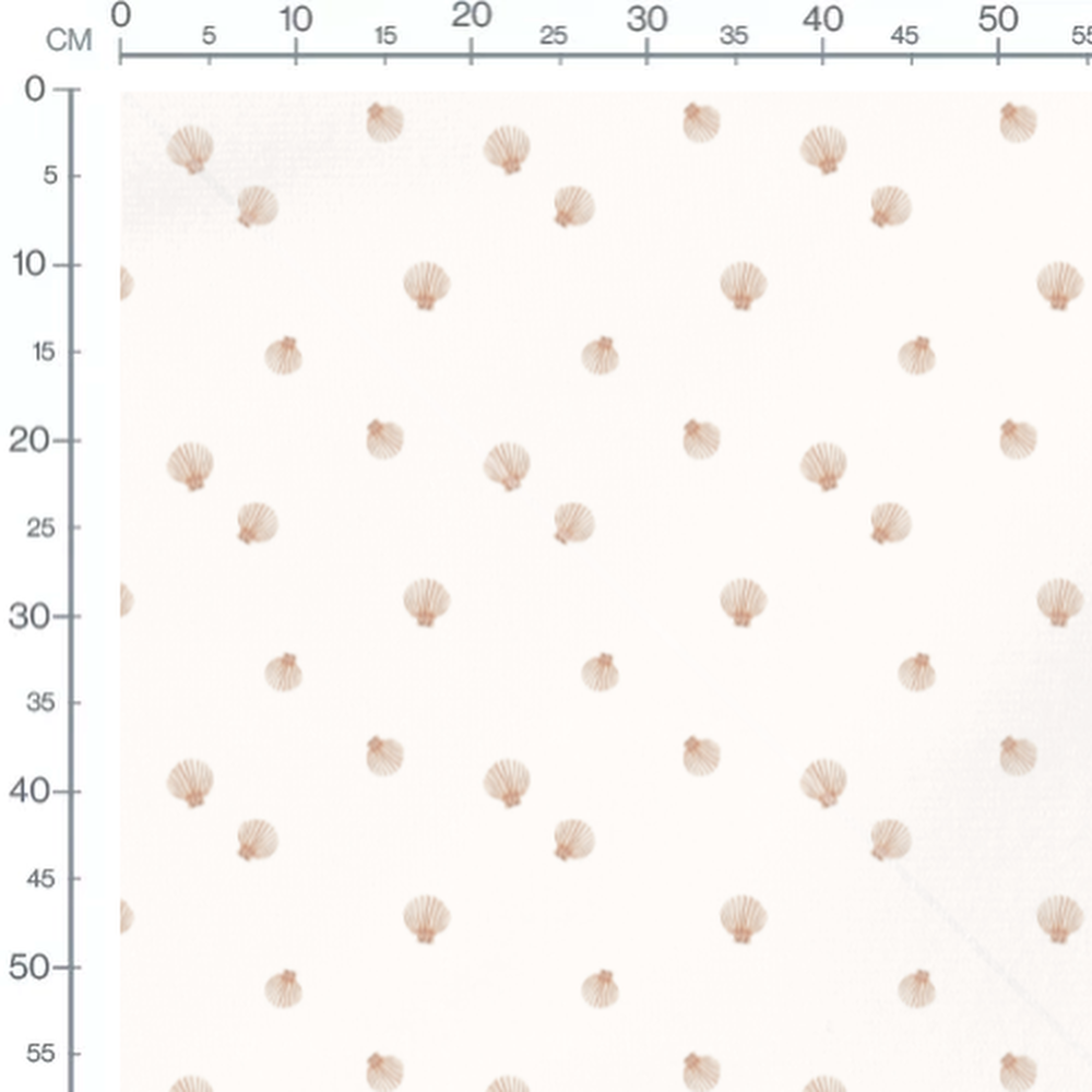 Les coquillages sont de couleur beige avec des nuances subtiles. Le fond blanc met en valeur la simplicité du motif marin.Les tissus
