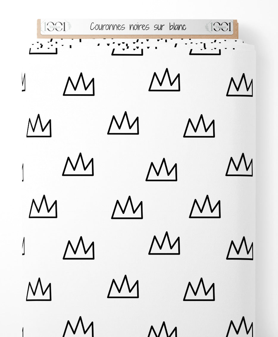 Tissu - Couronnes noires sur blanc