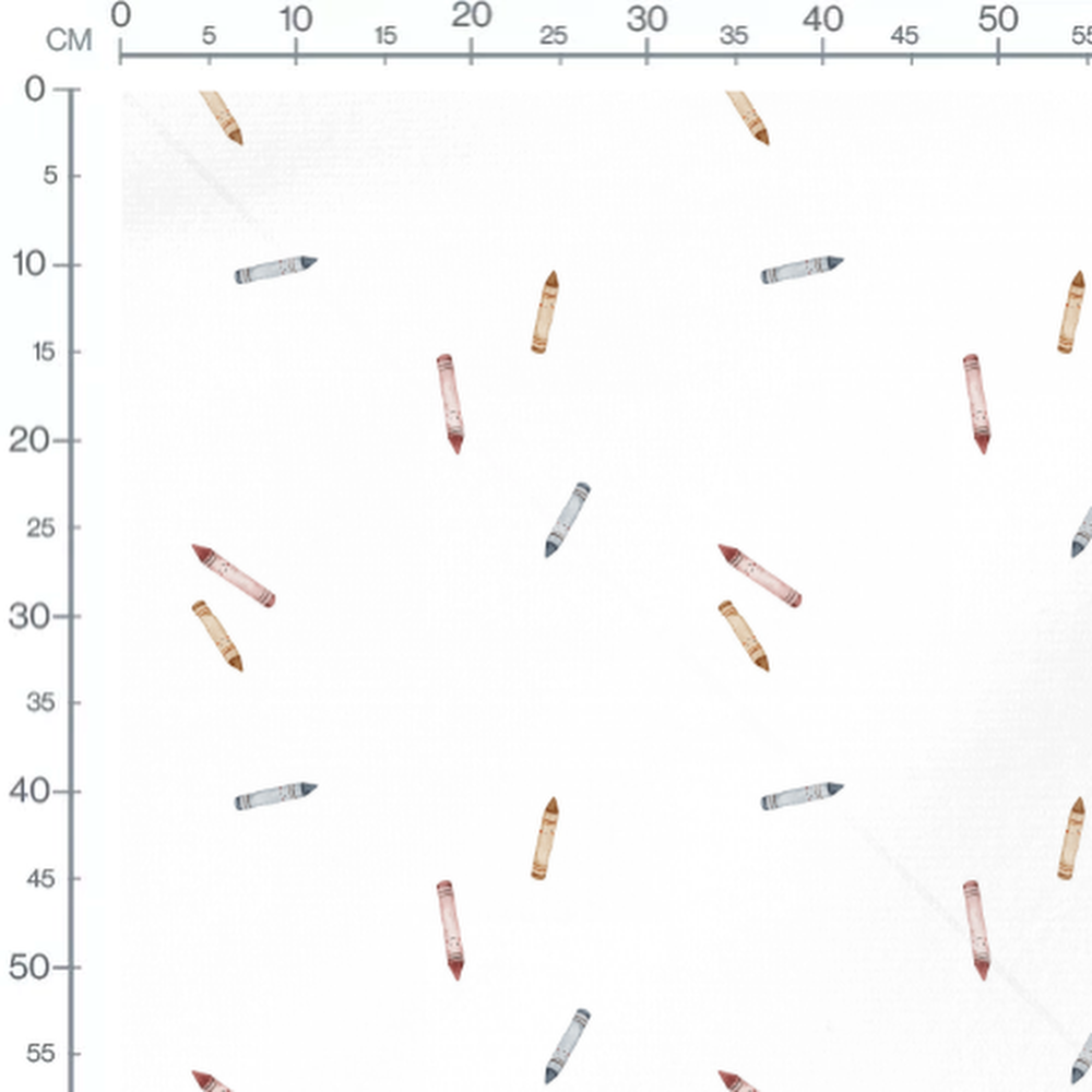 Les crayons sont disposés de manière aléatoire. Chaque crayon est d'une couleur différente, ajoutant une touche ludique au motif.Les tissus