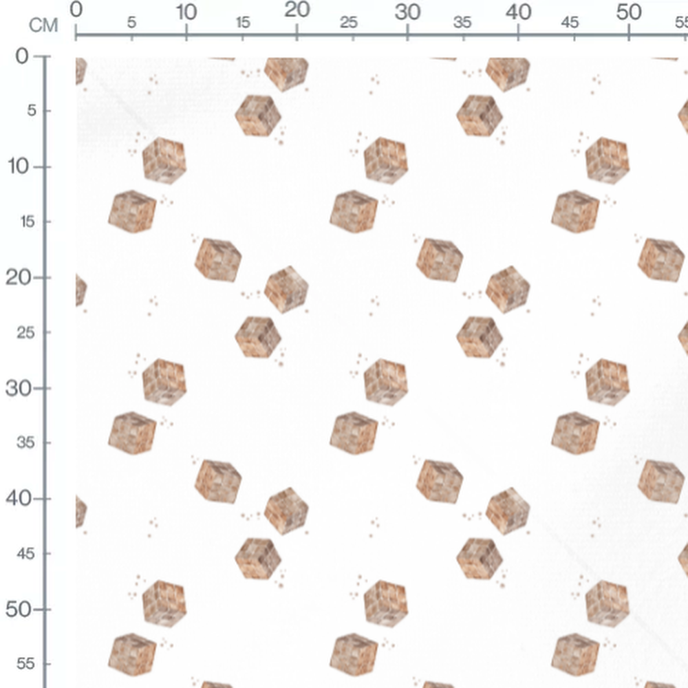 Les cubes présentent des nuances de marron et sont dessinés en style aquarelle. Les petites taches beige ajoutent un effet de texture au motif.Les tissus