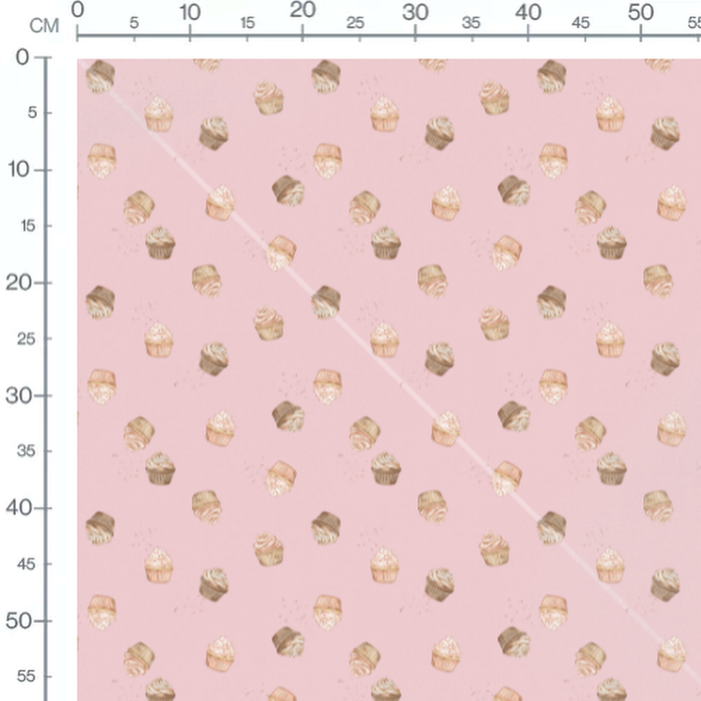 Les cupcakes sont décorés de glaçage à la vanille et au chocolat. Des éclats colorés parsèment certains glaçages. Le fond rose pastel met en valeur les nuances des cupcakes.Les tissus