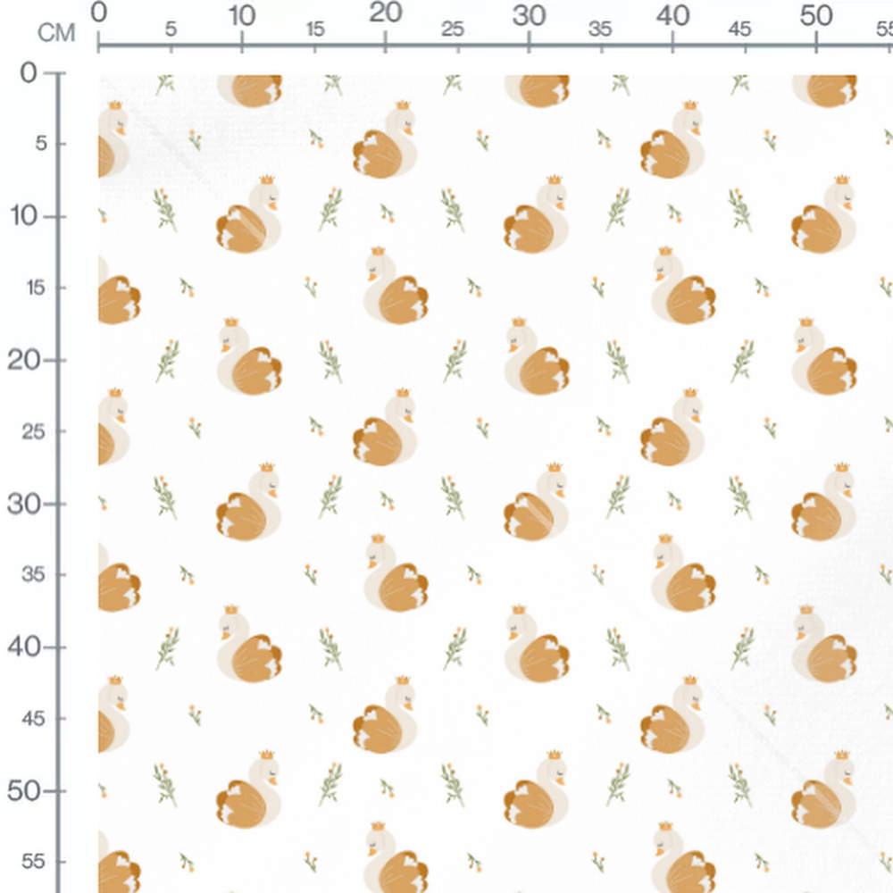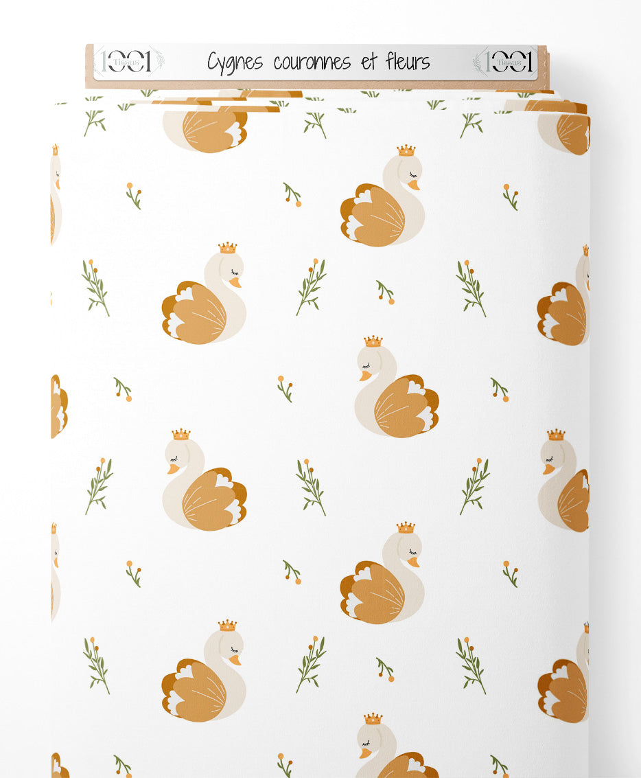 Tissu - Cygnes couronnés et fleurs