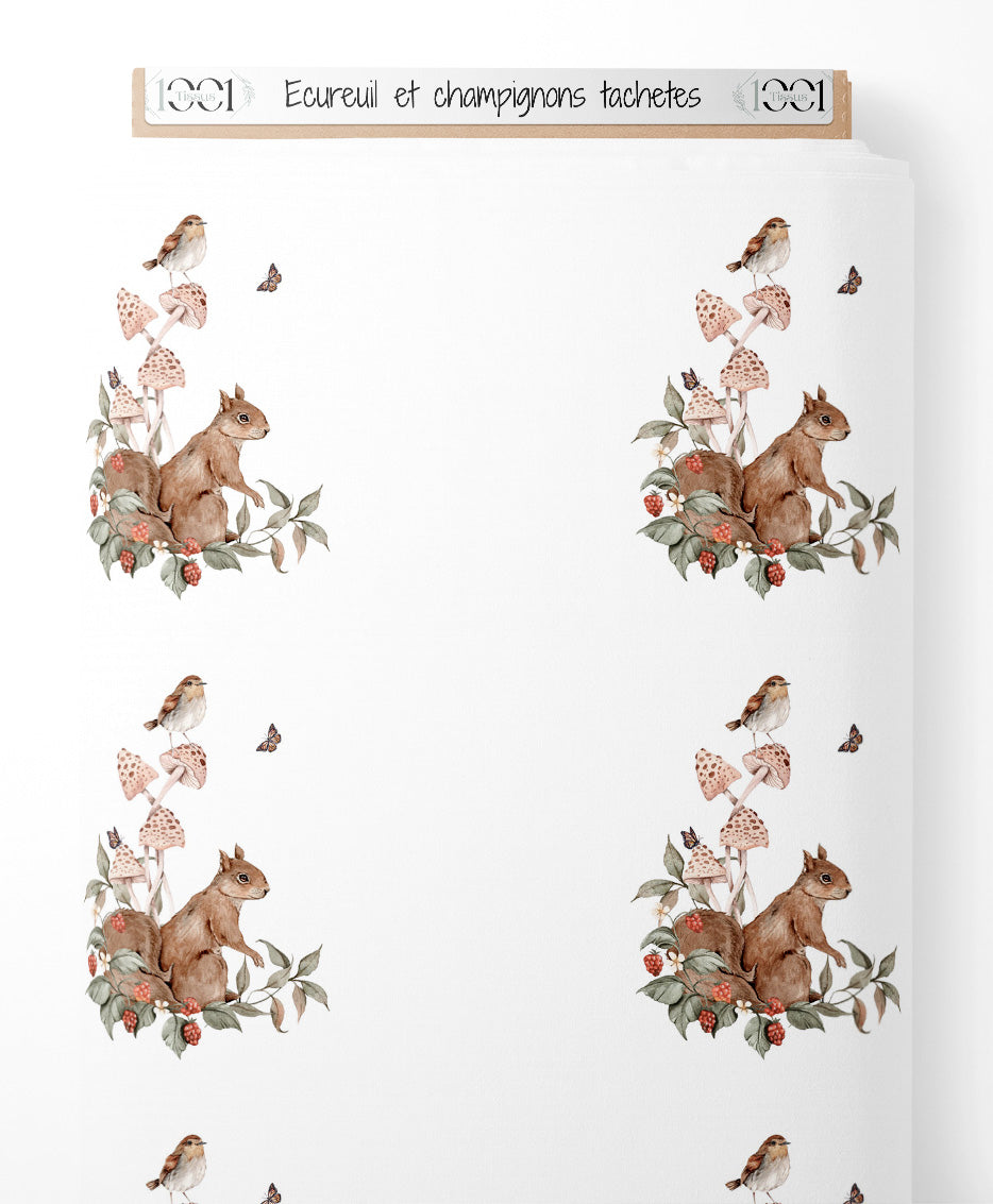Tissu - Écureuil et champignons tachetés