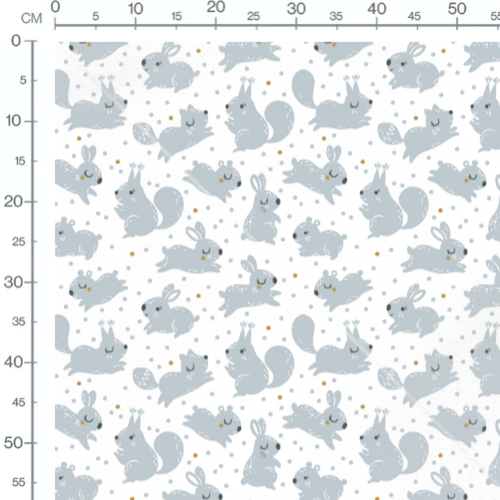 Les écureuils sont dessinés dans des positions variées, ajoutant une touche ludique. Les pois ajoutent un élément graphique subtil au motif.Les tissus