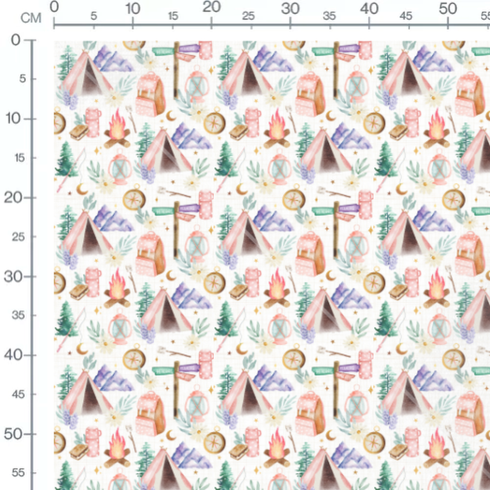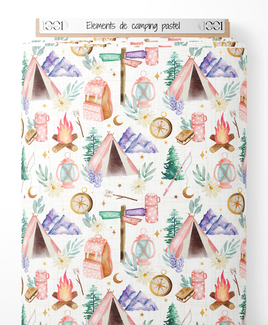 Tissu - Éléments de camping pastel