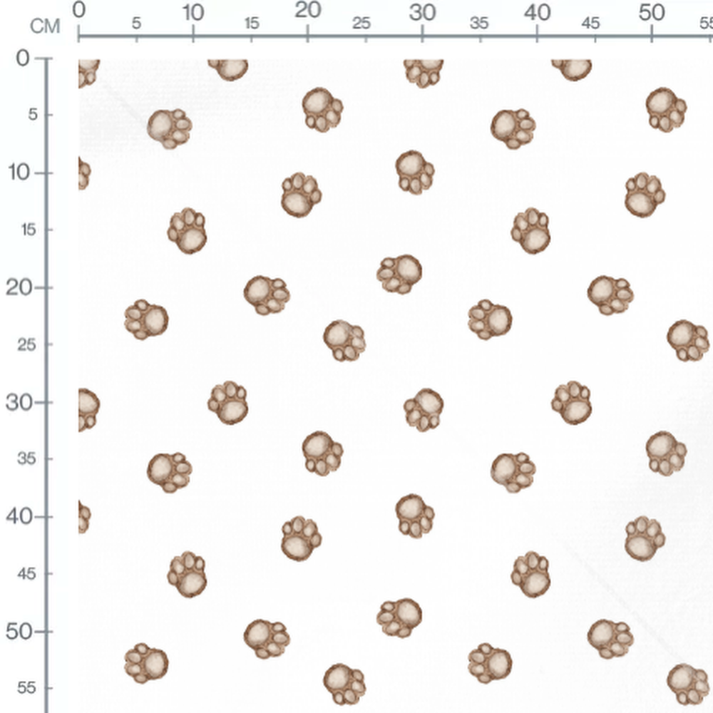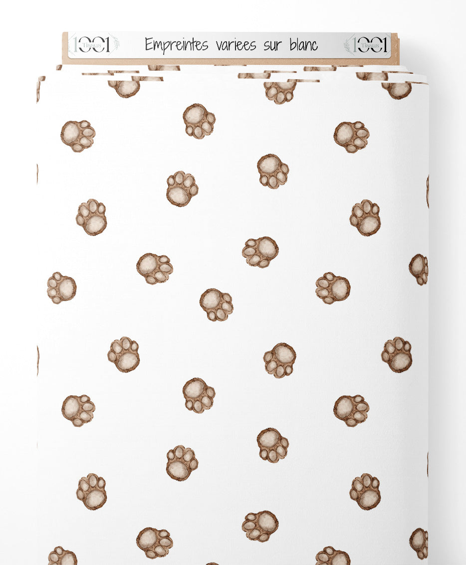 Les empreintes de pattes sont disposées de manière aléatoire. Chaque empreinte est détaillée avec des contours légèrement flous.Les tissus