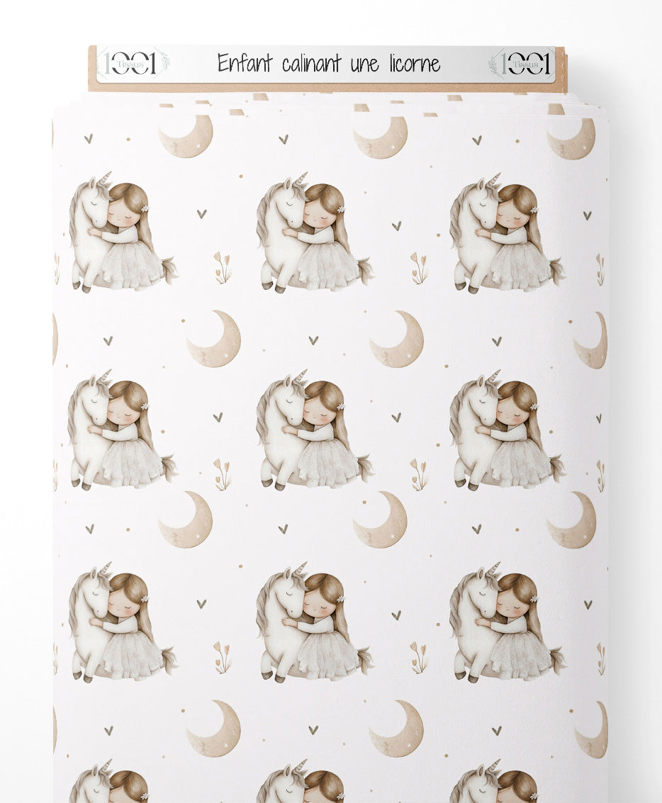 Tissu - Enfant câlinant une licorne