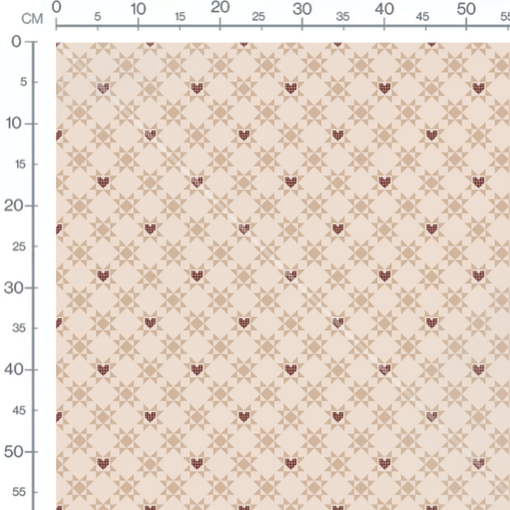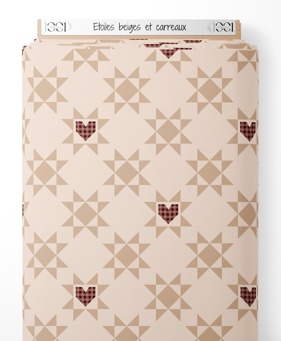 Les étoiles sont composées de triangles et de losanges beiges. Les coeurs en carreaux ajoutent une touche contrastante au motif.Les tissus