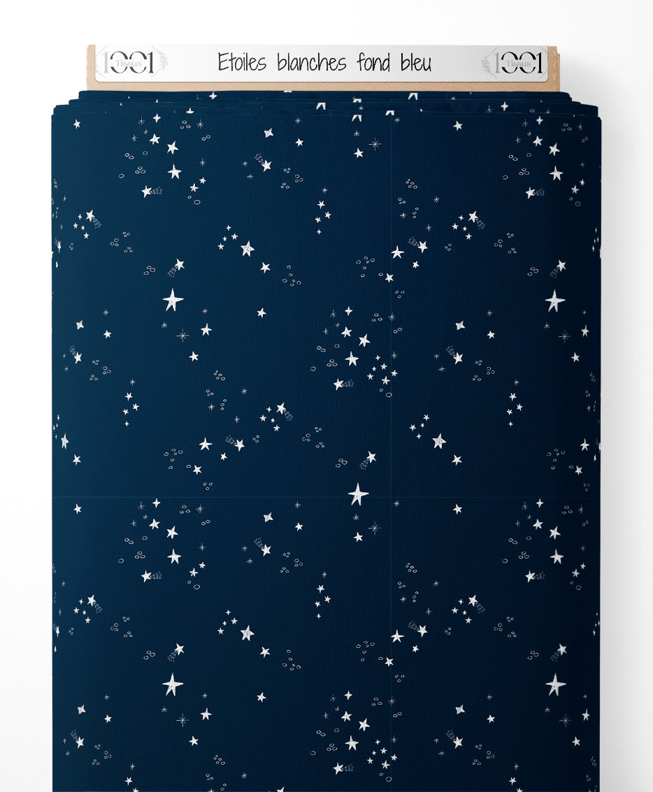 Les étoiles varient en taille, créant un effet de ciel étoilé. Les petits cercles ajoutent une dimension supplémentaire au motif.Les tissus