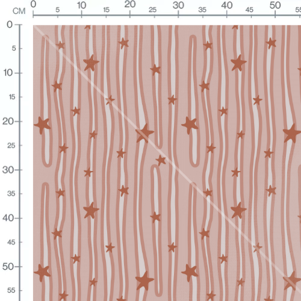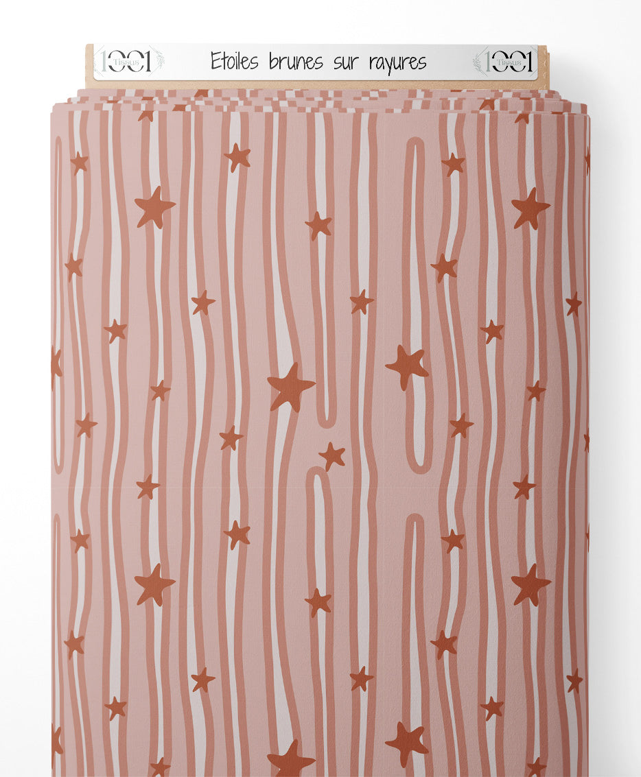 Les étoiles varient en taille et sont dispersées sur le motif. Les rayures créent un effet de mouvement sur le fond.Les tissus