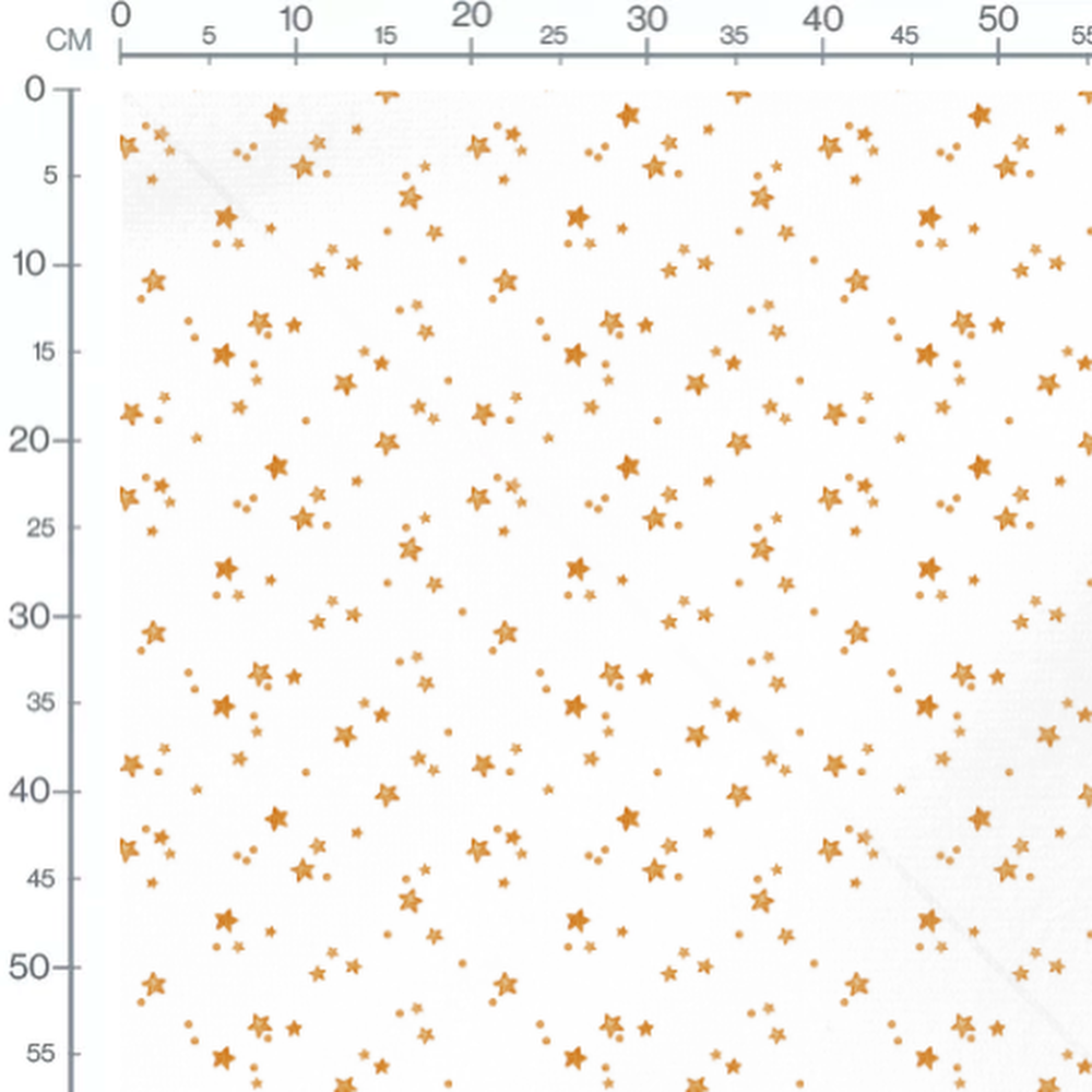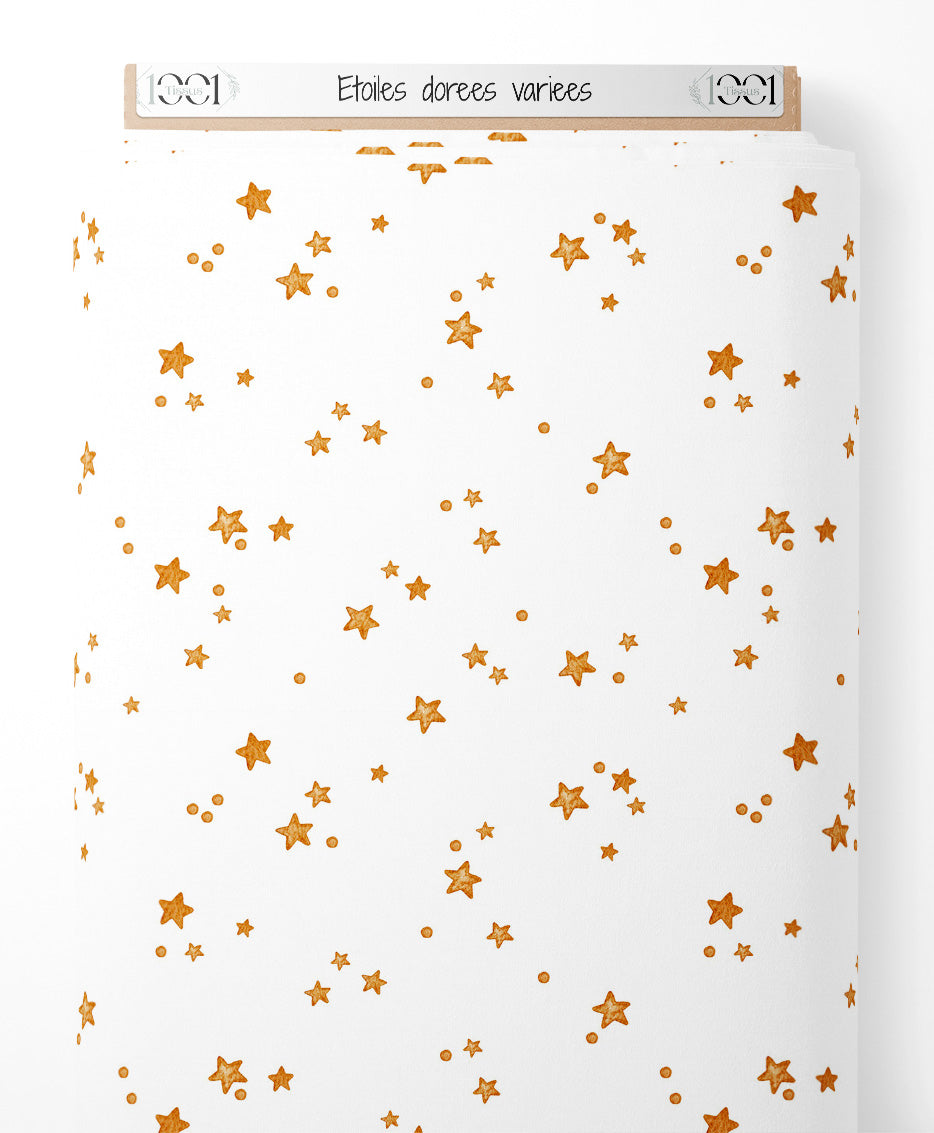 Les étoiles sont de différentes tailles et nuances de doré. Les petits points ajoutent une touche de contraste au motif.Les tissus