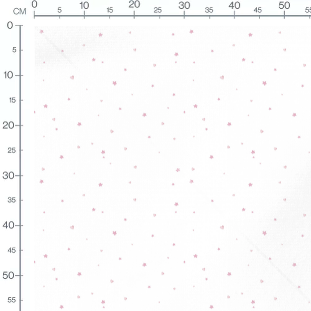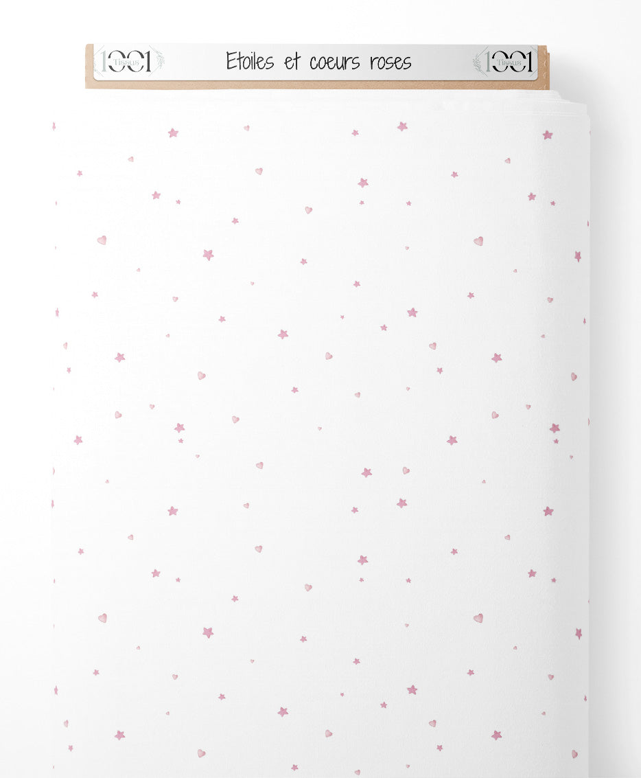 Les étoiles sont de différentes tailles, ajoutant une touche délicate. Les cœurs sont également de tailles variées, créant un motif harmonieux.Les tissus