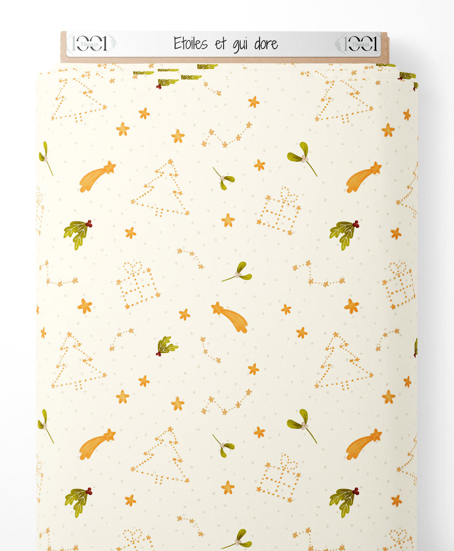 Tissu - Étoiles et gui doré