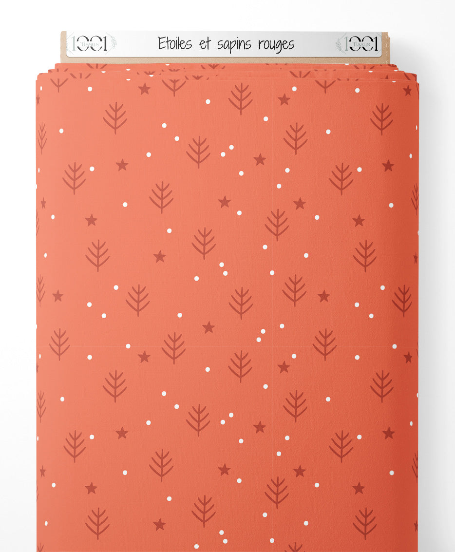 Tissu - Étoiles et sapins rouges