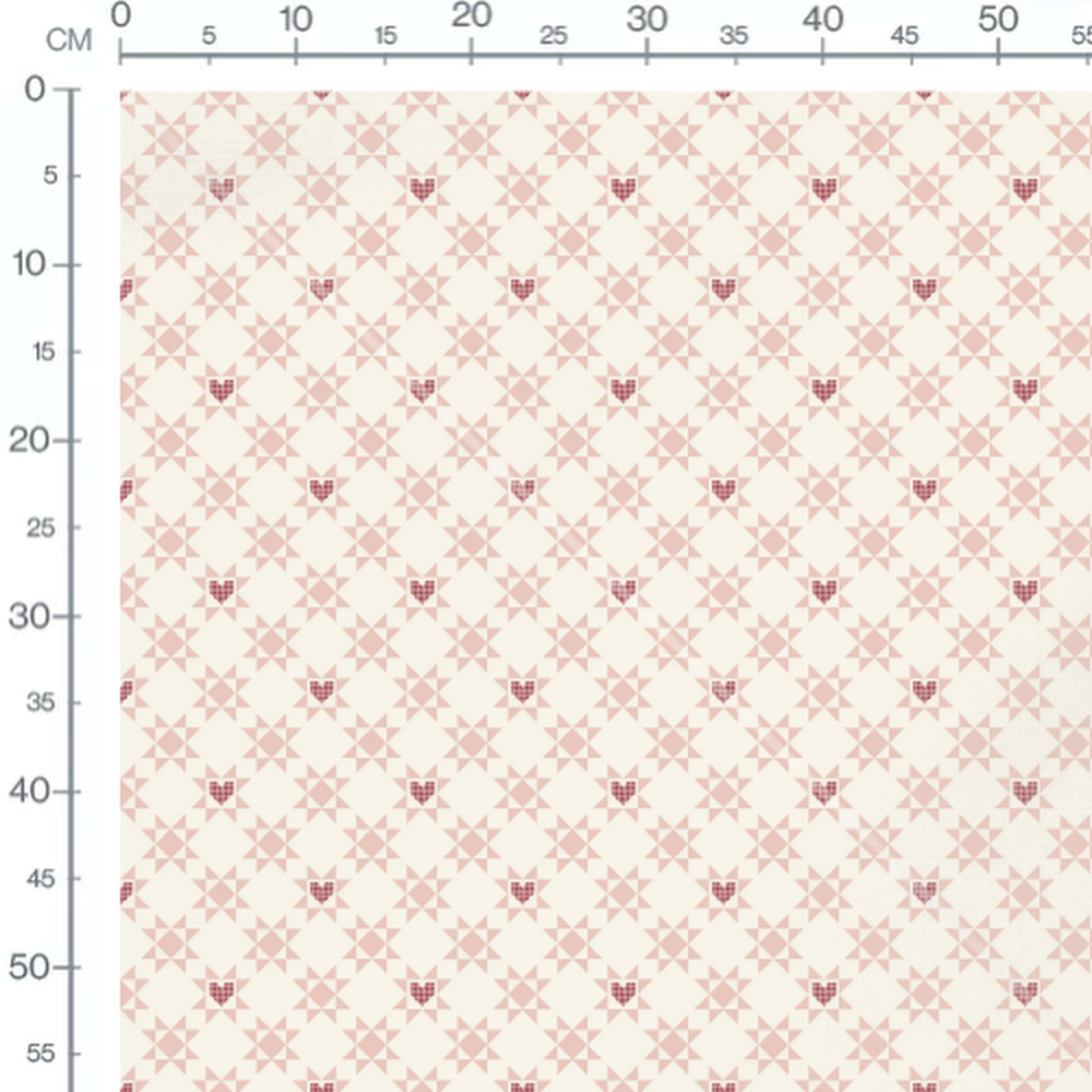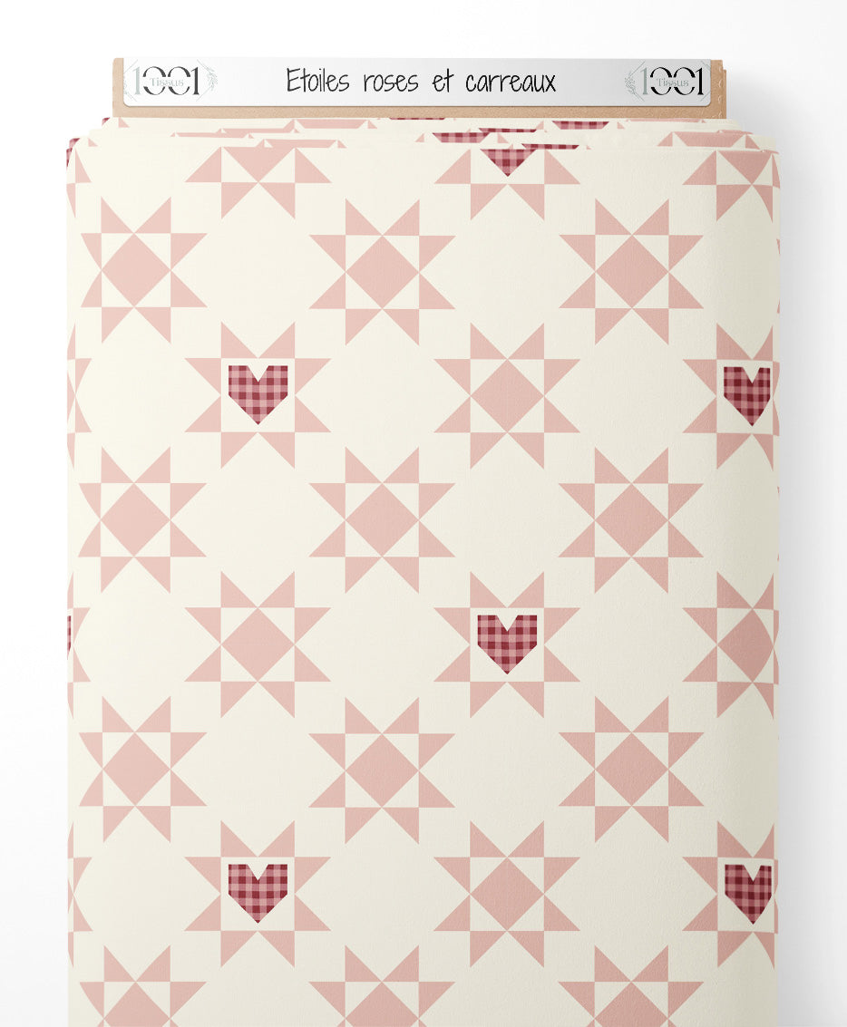 Les étoiles sont composées de triangles et de carrés roses. Les cœurs en carreaux ajoutent une touche contrastante au motif.Les tissus