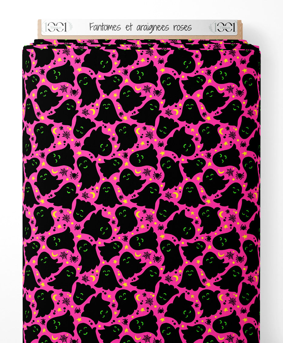 Tissu - Fantômes et araignées roses