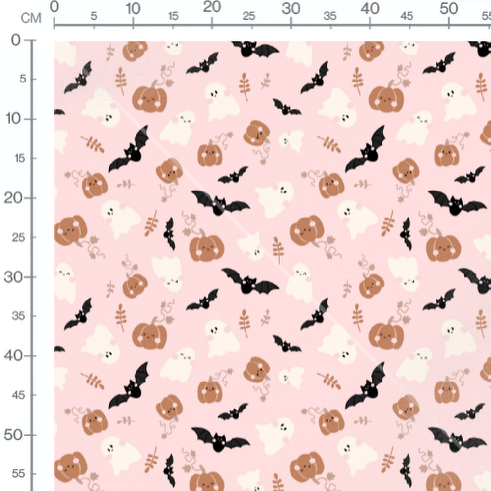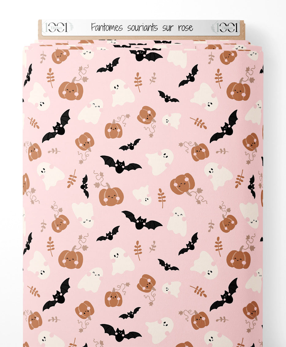 Tissu - Fantômes souriants sur rose