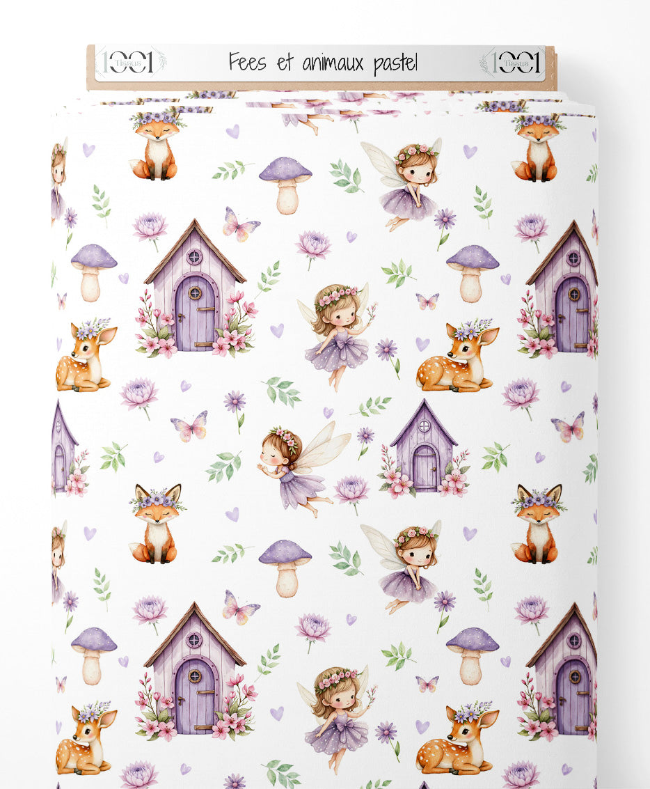 Tissu - Fées et animaux pastel