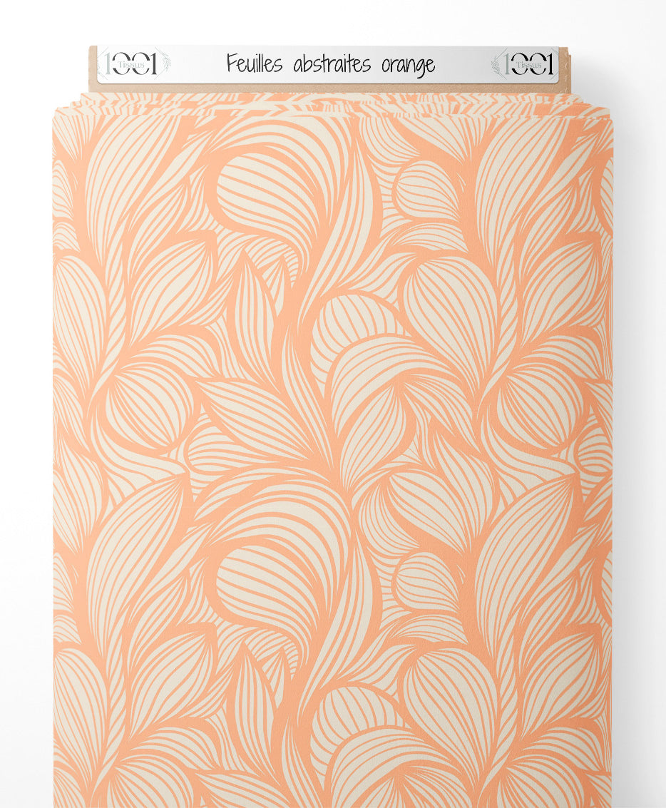 Les feuilles sont dessinées avec des lignes fines et courbes. Le motif crée un effet de mouvement fluide et organique. Les teintes d'orange contrastent délicatement avec le fond crème.Les tissus
