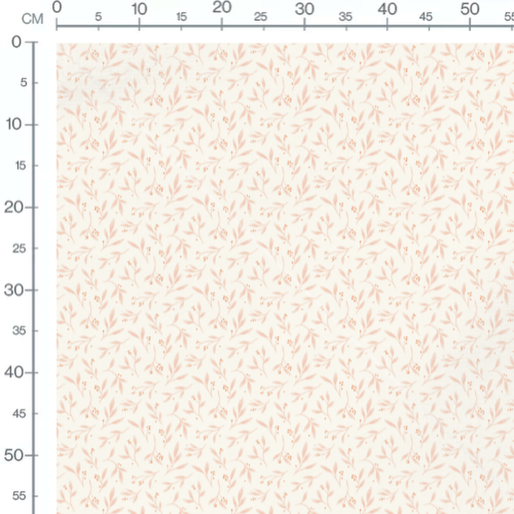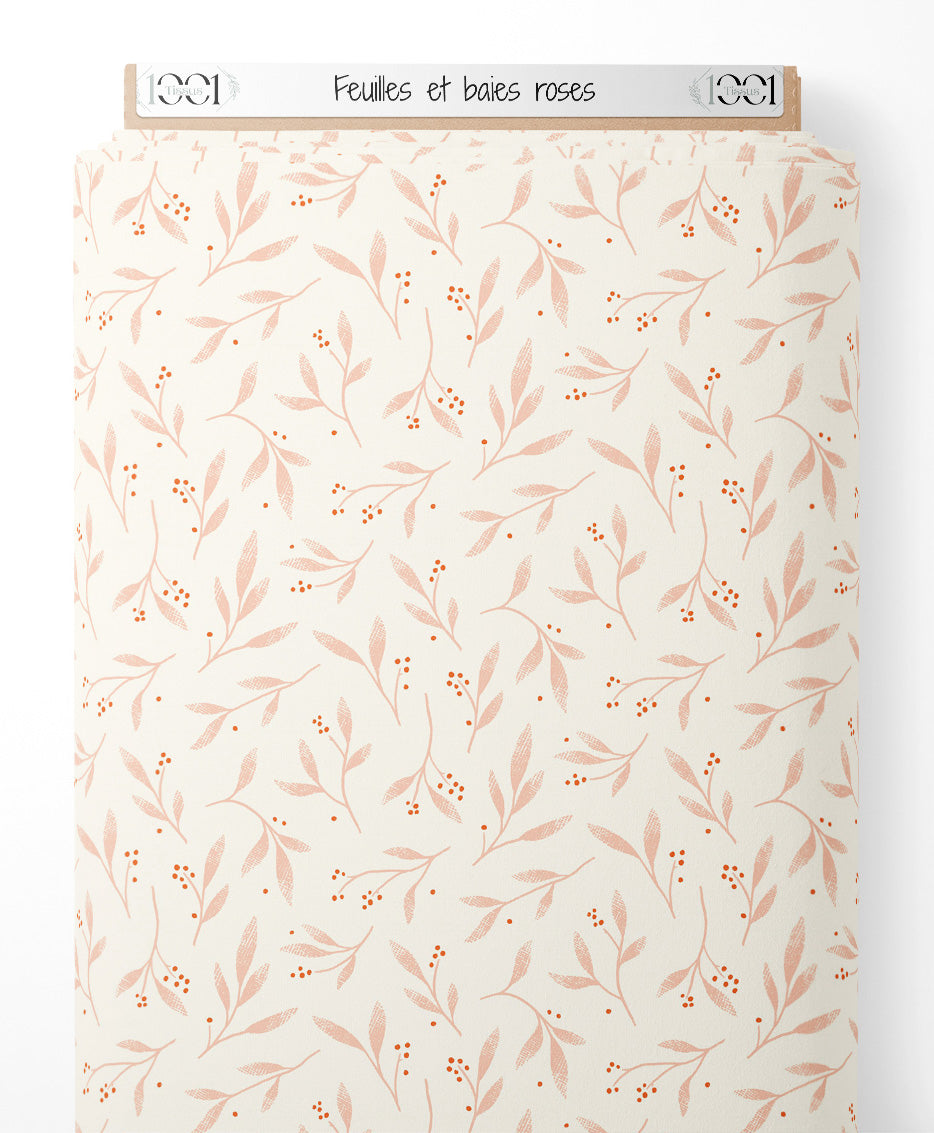Les feuilles sont dessinées avec des lignes fines et élégantes. Les baies ajoutent une touche de couleur subtile au motif. Le fond crème met en valeur la douceur des éléments naturels.Les tissus