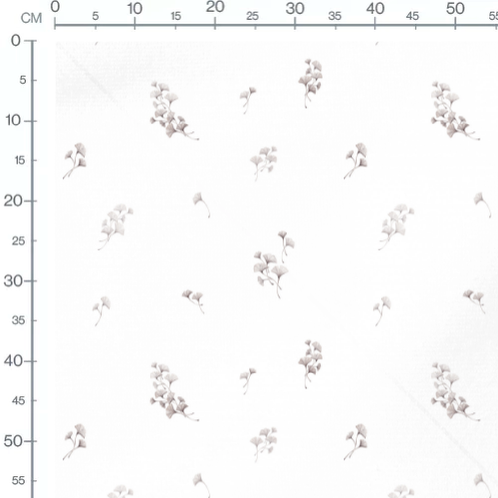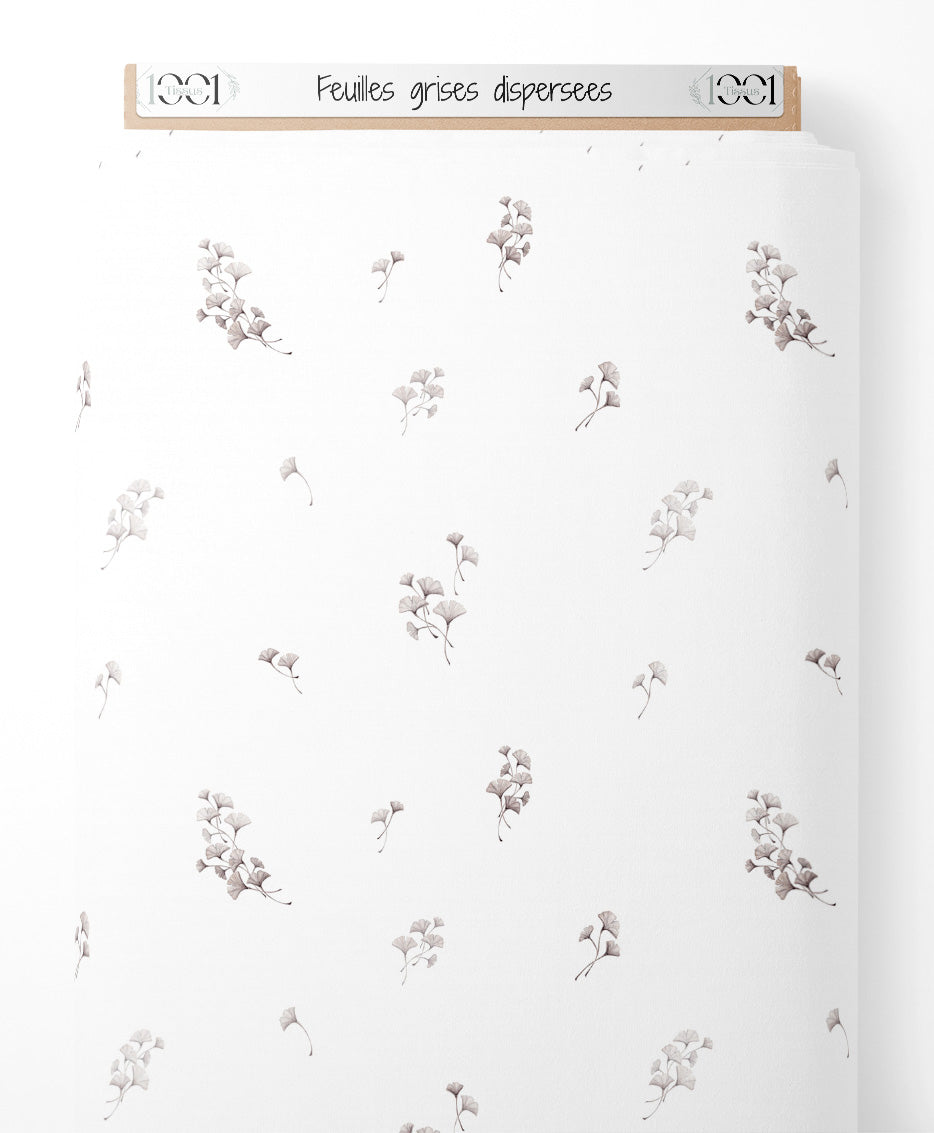 Les feuilles sont de différentes tailles et nuances de gris. Elles sont disposées de manière aléatoire sur le fond blanc.Les tissus