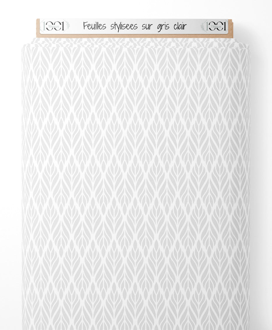 Les feuilles blanches sont disposées en un motif régulier. Le fond gris clair met en valeur les formes des feuilles.Les tissus
