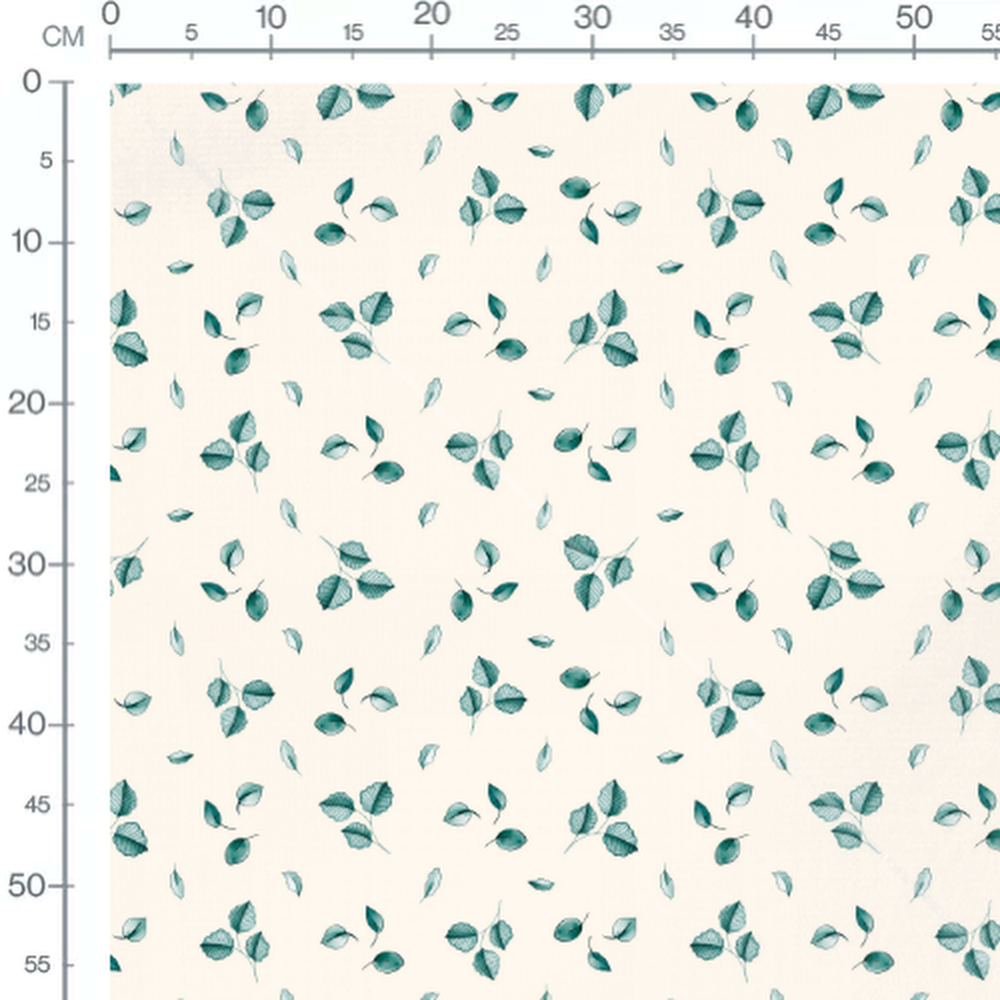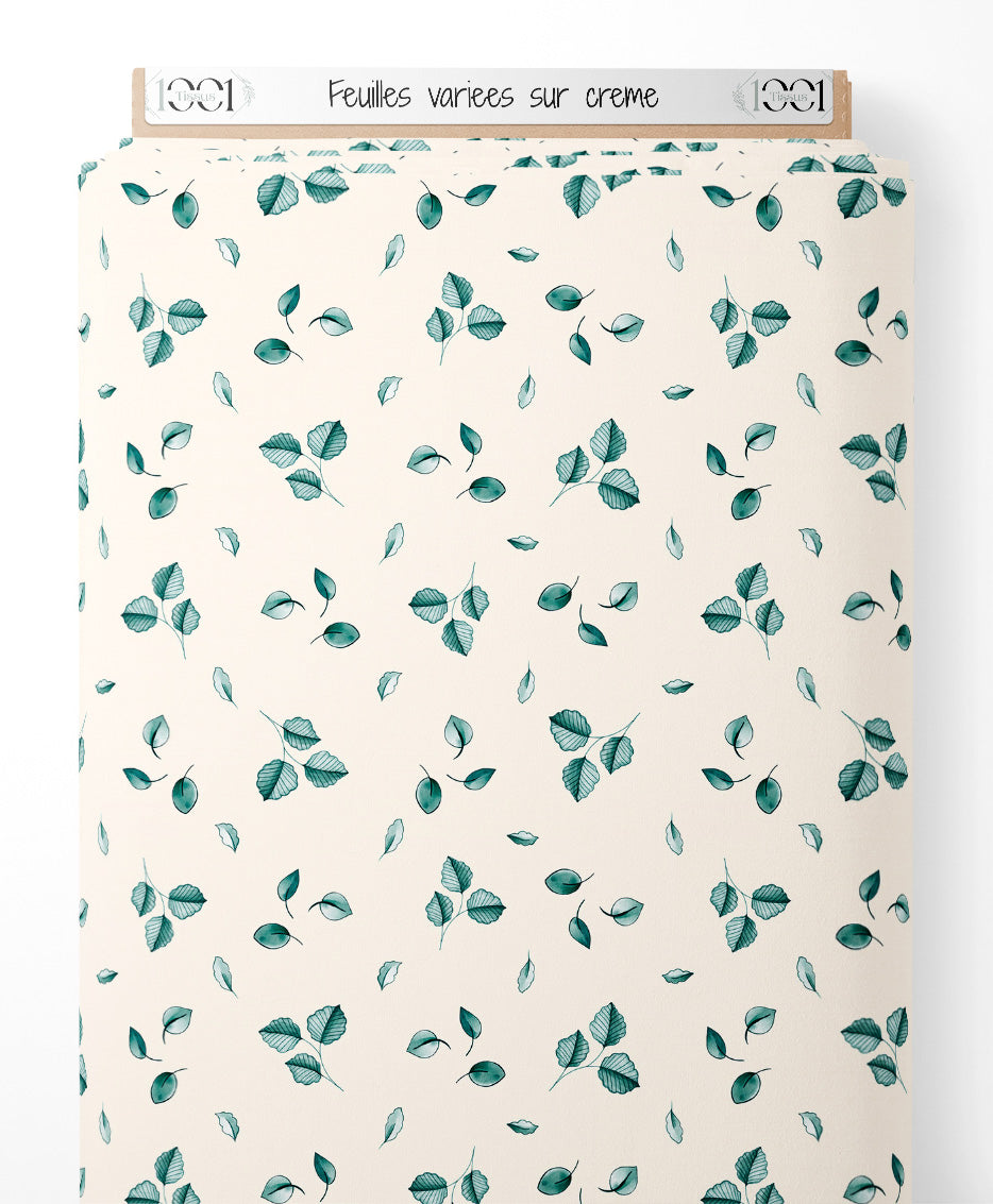 Les feuilles sont de différentes formes et tailles, créant un motif harmonieux. Les nuances de vert varient du clair au foncé, ajoutant de la profondeur au design.Les tissus