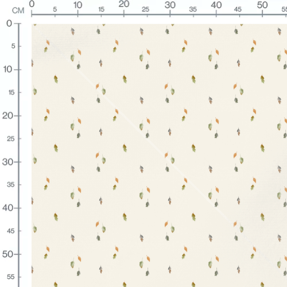 Les feuilles sont délicatement dessinées en aquarelle. Les nuances de vert se mêlent à des teintes automnales d'orange et de marron. Le fond crème met en valeur la douceur des couleurs.Les tissus