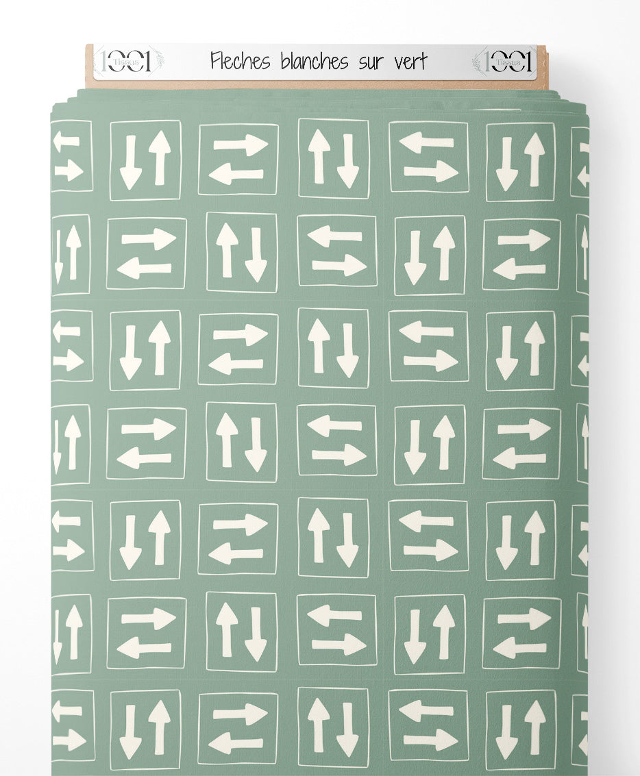 Les flèches sont entourées de carrés blancs. Le fond vert est uniforme et doux.Les tissus