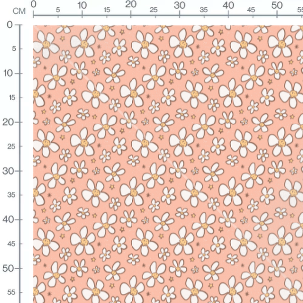 Les fleurs ont des contours marron. Le fond rose est parsemé de petites étoiles marron.Les tissus