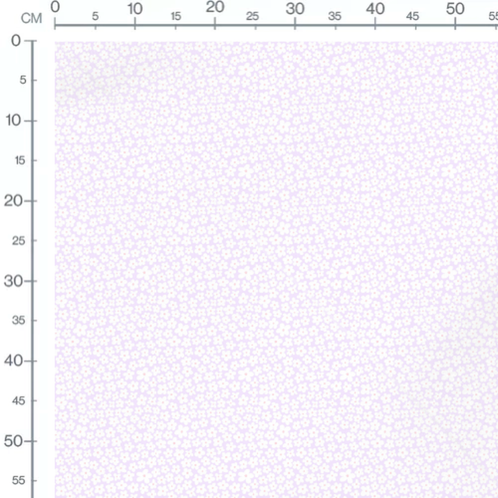Les fleurs blanches sont petites et uniformes. Le fond lilas ajoute une touche douce et apaisante. Les centres roses des fleurs créent un contraste subtil.Les tissus