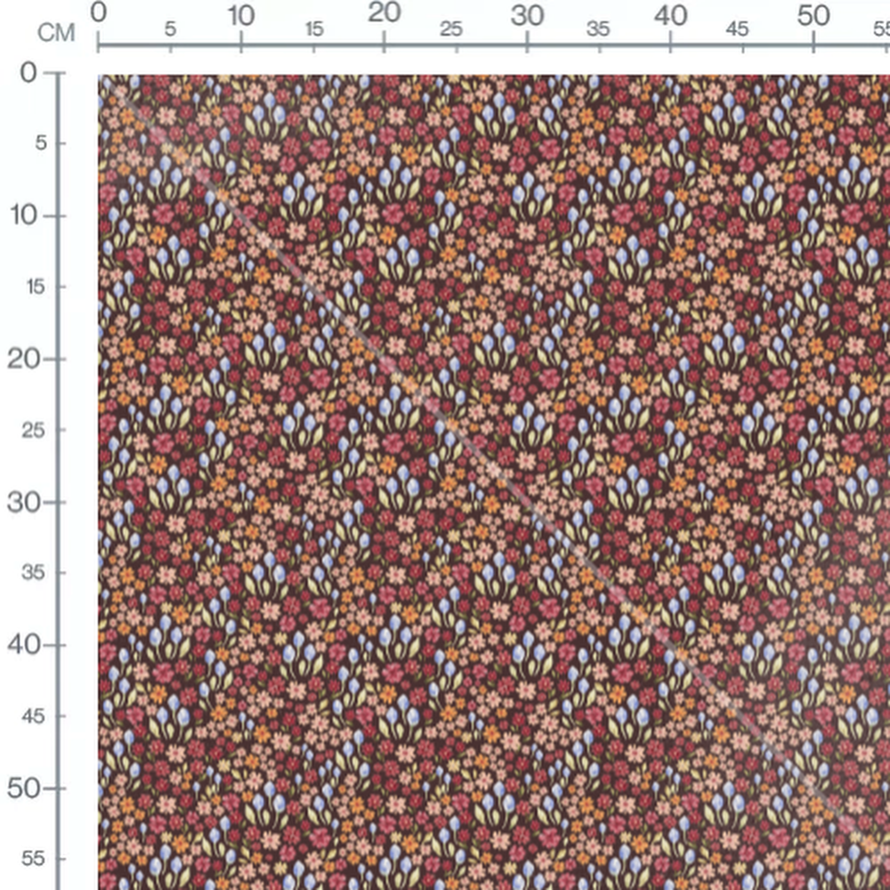 Les fleurs bleues sont en forme de tulipes. Les fleurs roses et jaunes sont petites et variées. Les feuilles vertes ajoutent une touche de fraîcheur au motif.Les tissus