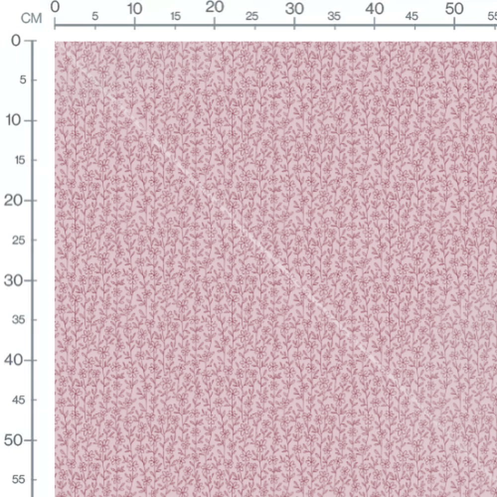 Les fleurs sont de différentes tailles et formes. Les tiges et feuilles sont également dessinées en rose.Les tissus