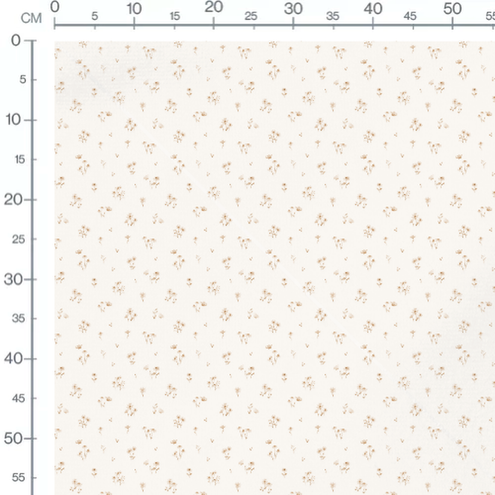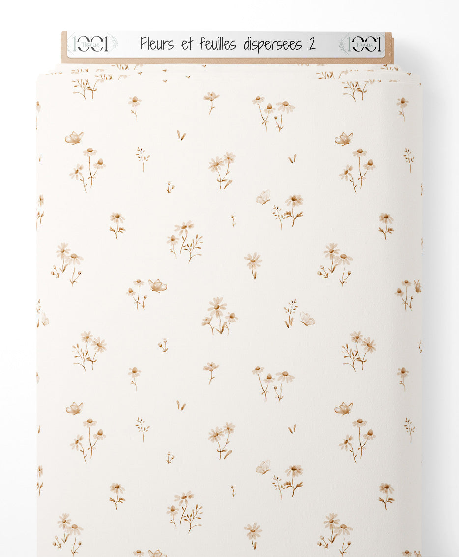 Les fleurs sont de différentes tailles et formes. Les feuilles sont fines et délicates. Le fond crème met en valeur les motifs floraux. Quelques bourgeons ajoutent de la variété au motif.Les tissus