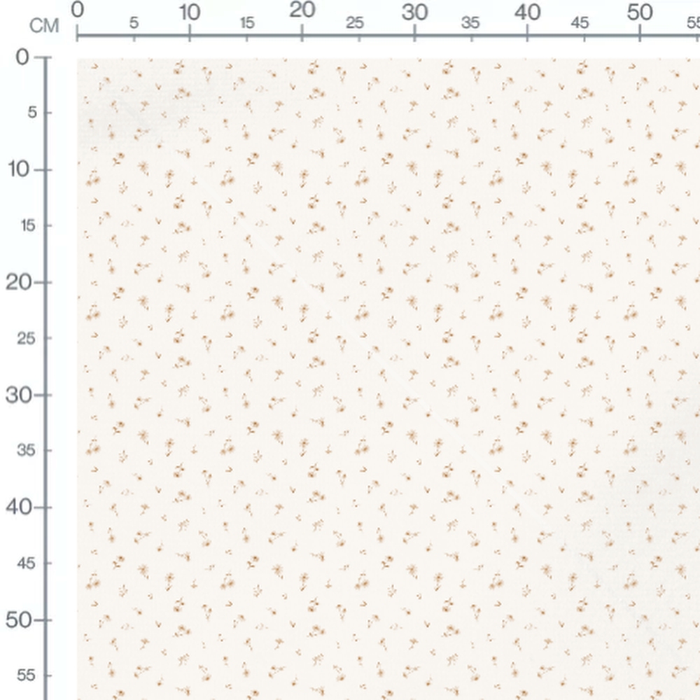 Les fleurs sont dispersées avec des nuances de beige et de marron. Les tiges et feuilles ajoutent une touche de légèreté au motif.Les tissus