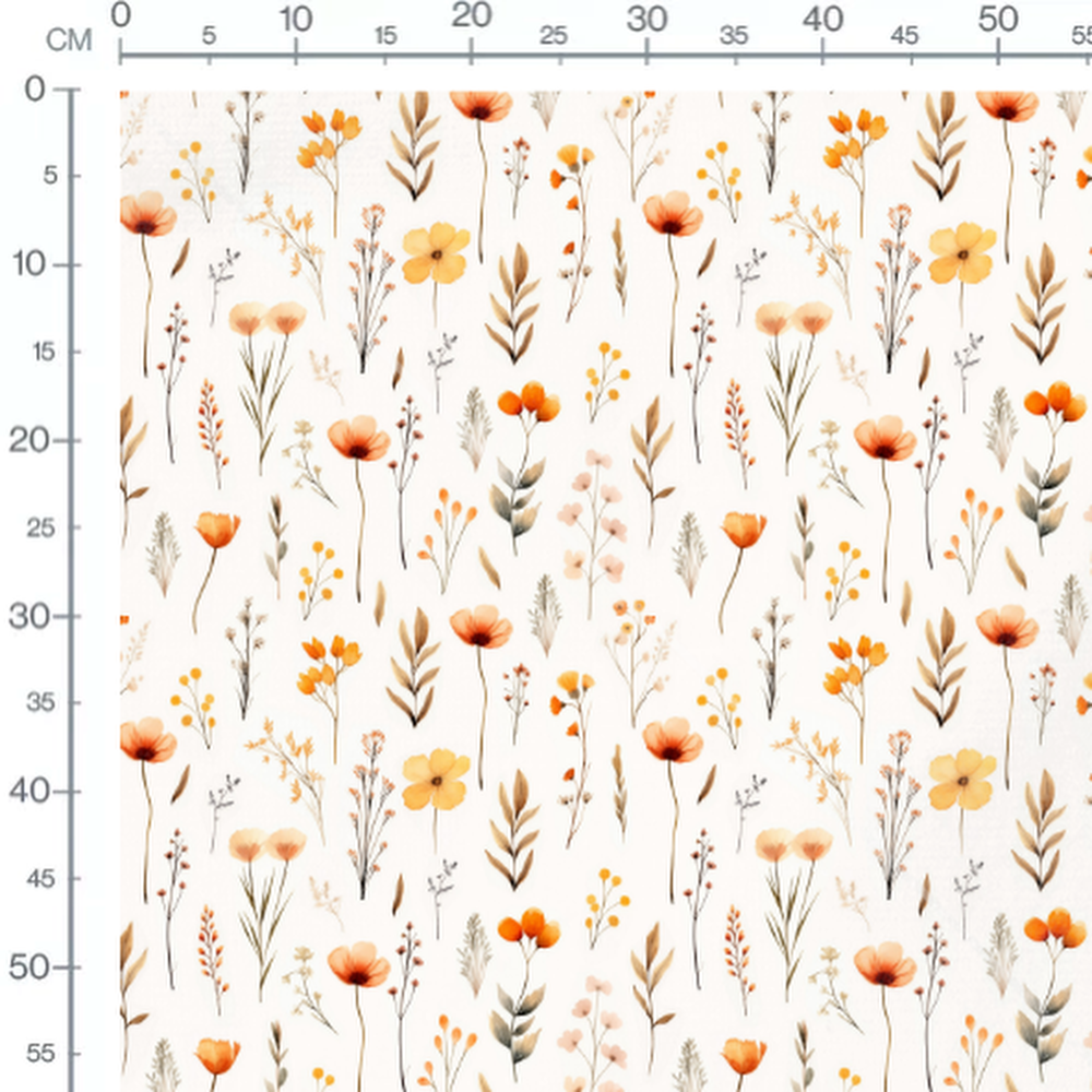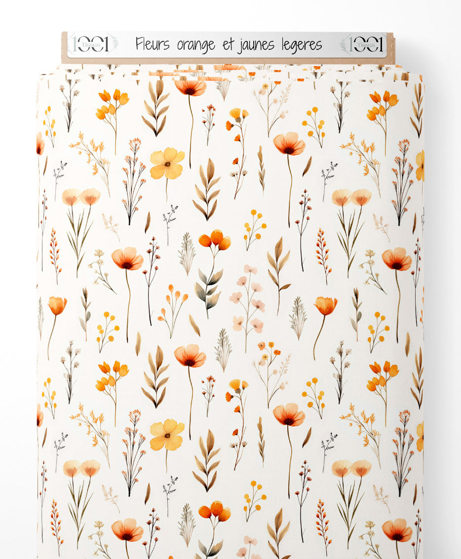 Tissu - Fleurs orange et jaunes légères