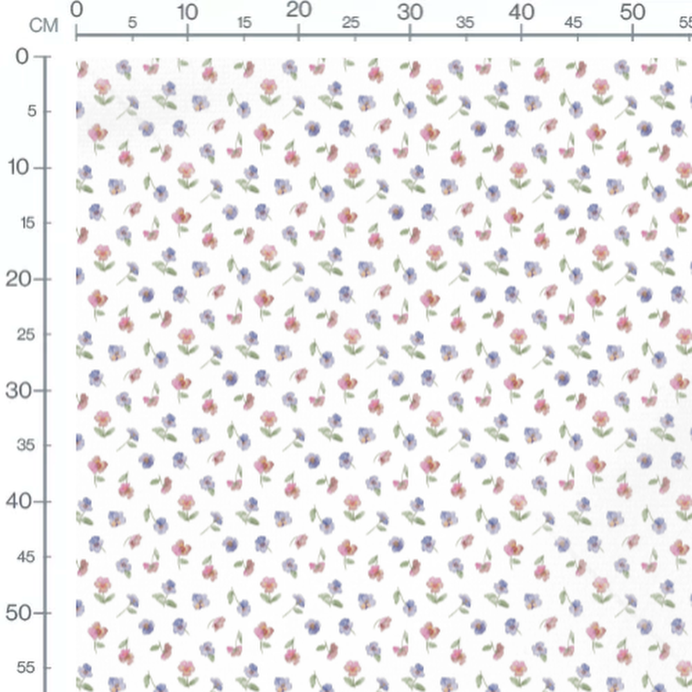Les fleurs sont délicatement peintes en nuances de rose et de violet. Les feuilles vertes ajoutent une touche de fraîcheur au motif. Chaque fleur est unique dans sa forme et sa teinte.Les tissus