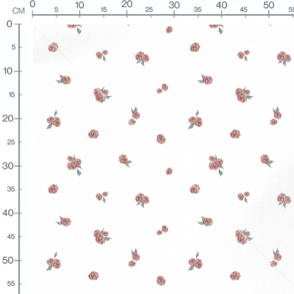 Les roses sont de différentes tailles, certaines en bouquet, d'autres seules. Les feuilles sont d'un vert doux, ajoutant un contraste subtil au motif.Les tissus