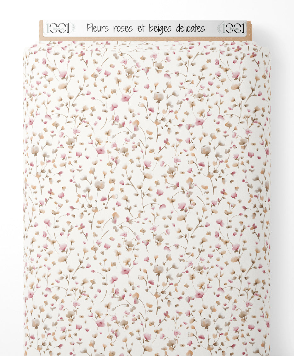 Les fleurs sont de différentes nuances de rose et beige. Les branches sont fines et dispersées harmonieusement.Les tissus