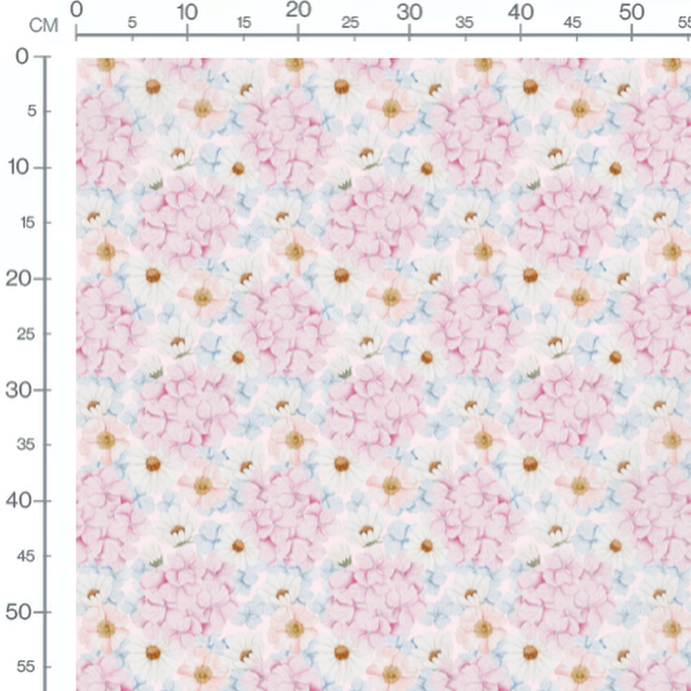 Tissu - Fleurs roses et bleues