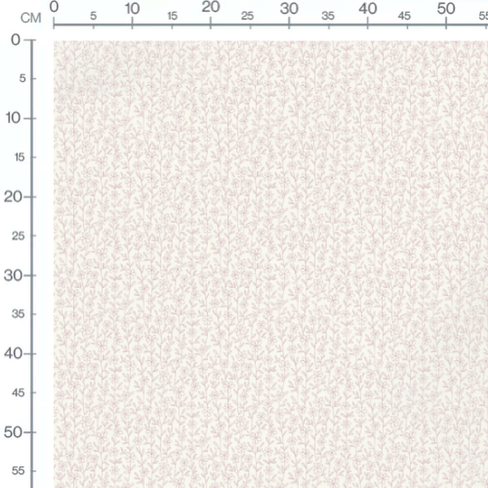 Les fleurs sont entourées de petites feuilles. Le motif est finement dessiné avec des lignes épurées.Les tissus