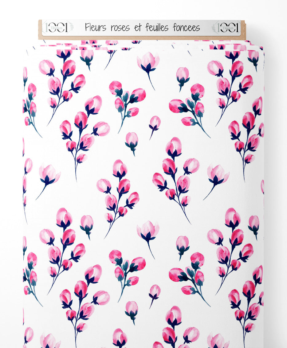 Tissu - Fleurs roses et feuilles foncées