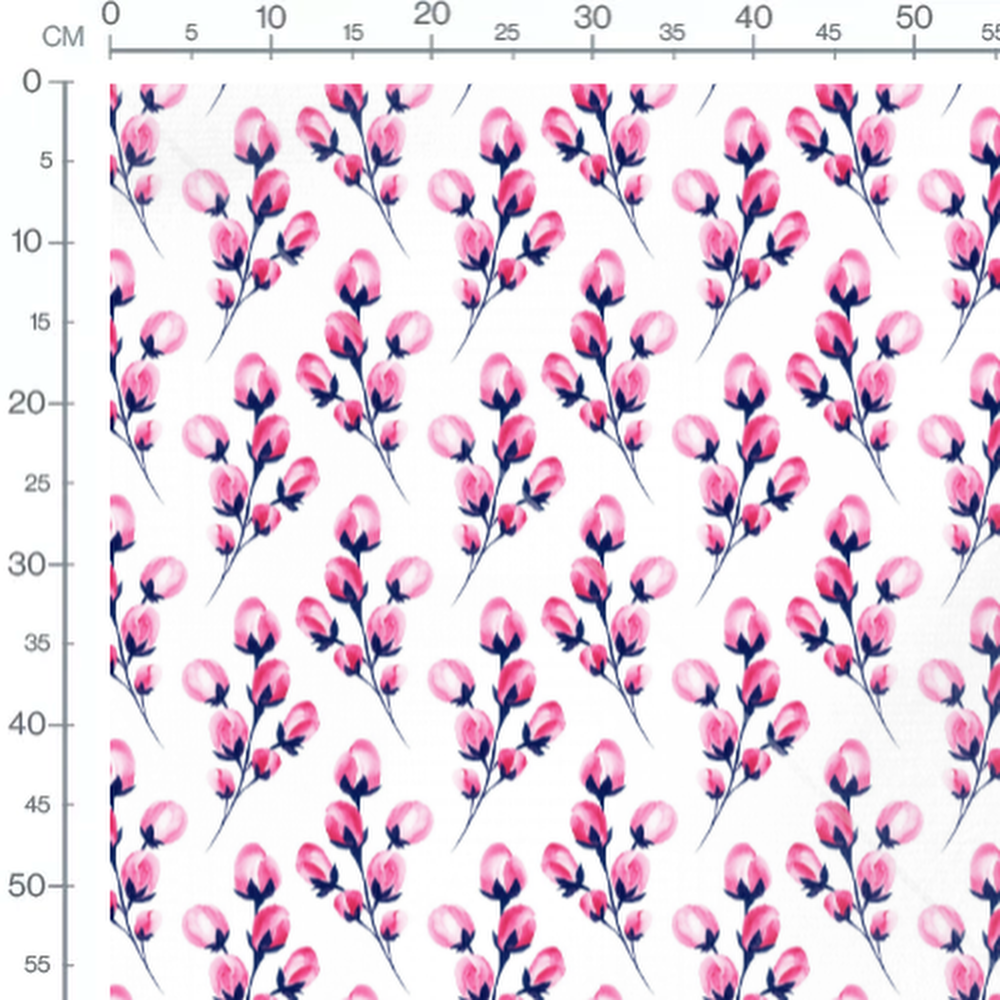 Les fleurs sont peintes dans des tons de rose vif. Les feuilles contrastent en noir, ajoutant une touche élégante.Les tissus