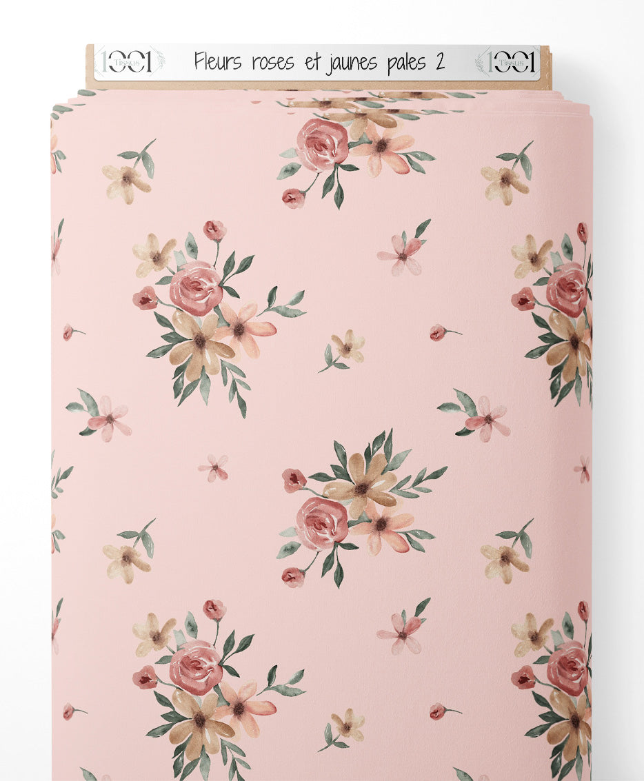 Tissu - Fleurs roses et jaunes pâles 2