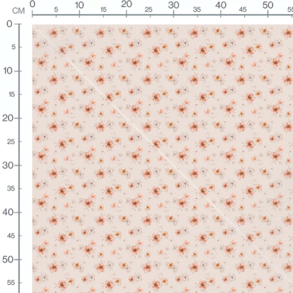 Les fleurs sont dessinées avec des nuances douces de rose et d'orange. Les contours des fleurs et des feuilles sont esquissés en beige clair. Le fond beige met en valeur la délicatesse des motifs floraux.Les tissus